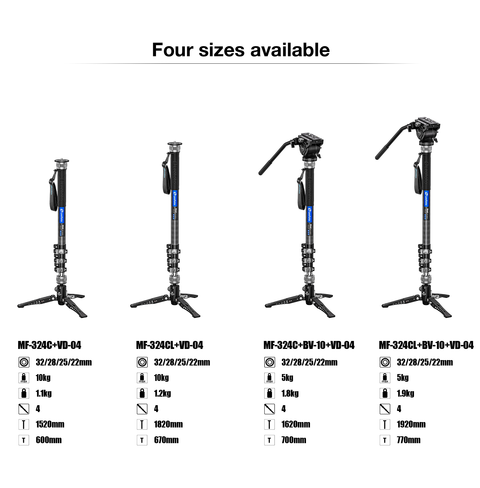 The VD-04 base enhances functionality with a foot pedal, allowing quick adjustments without using hands. Its 3 legs can be set at three different angles to customize height and stability, while the lockable ballhead provides smooth articulation. Additionally, the base includes a removable rubber foot that can be installed on the monopod for use as a standard monopod without the base.
