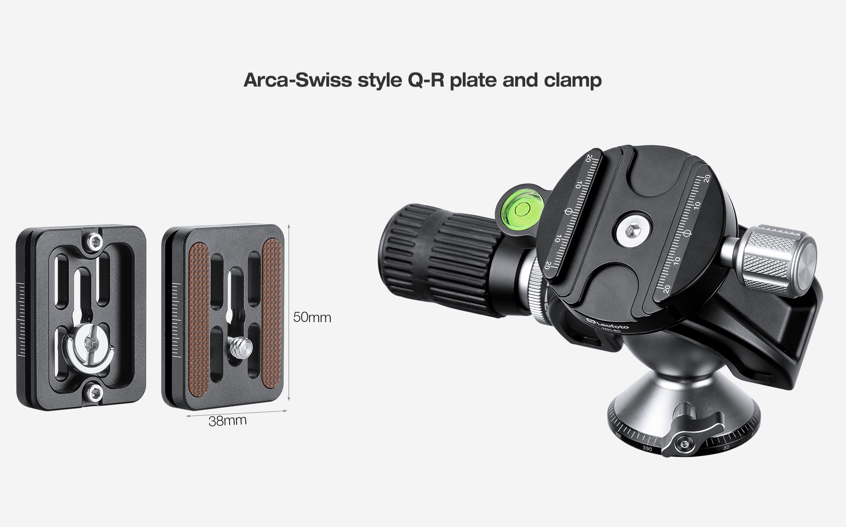 The integrated Arca-type quick release set uses a classic clamping knob and has a precision scale for fast balance and repeatable setups. The included BPL-50N quick release plate has rubberized, non-marring traction pads to prevent movement.
