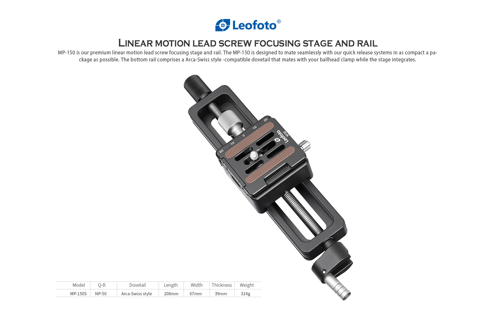/ Leofoto MP-150S Macro Focusing Rail with Rotating Arca-Type QR System