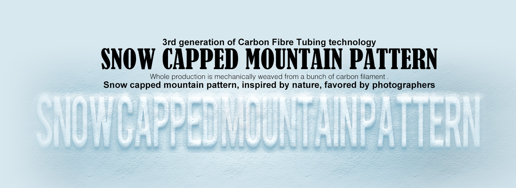 • 2nd generation of Carbon Fibre Tubing technology,Snow capped mountain pattern, inspired by nature, favored by photographers