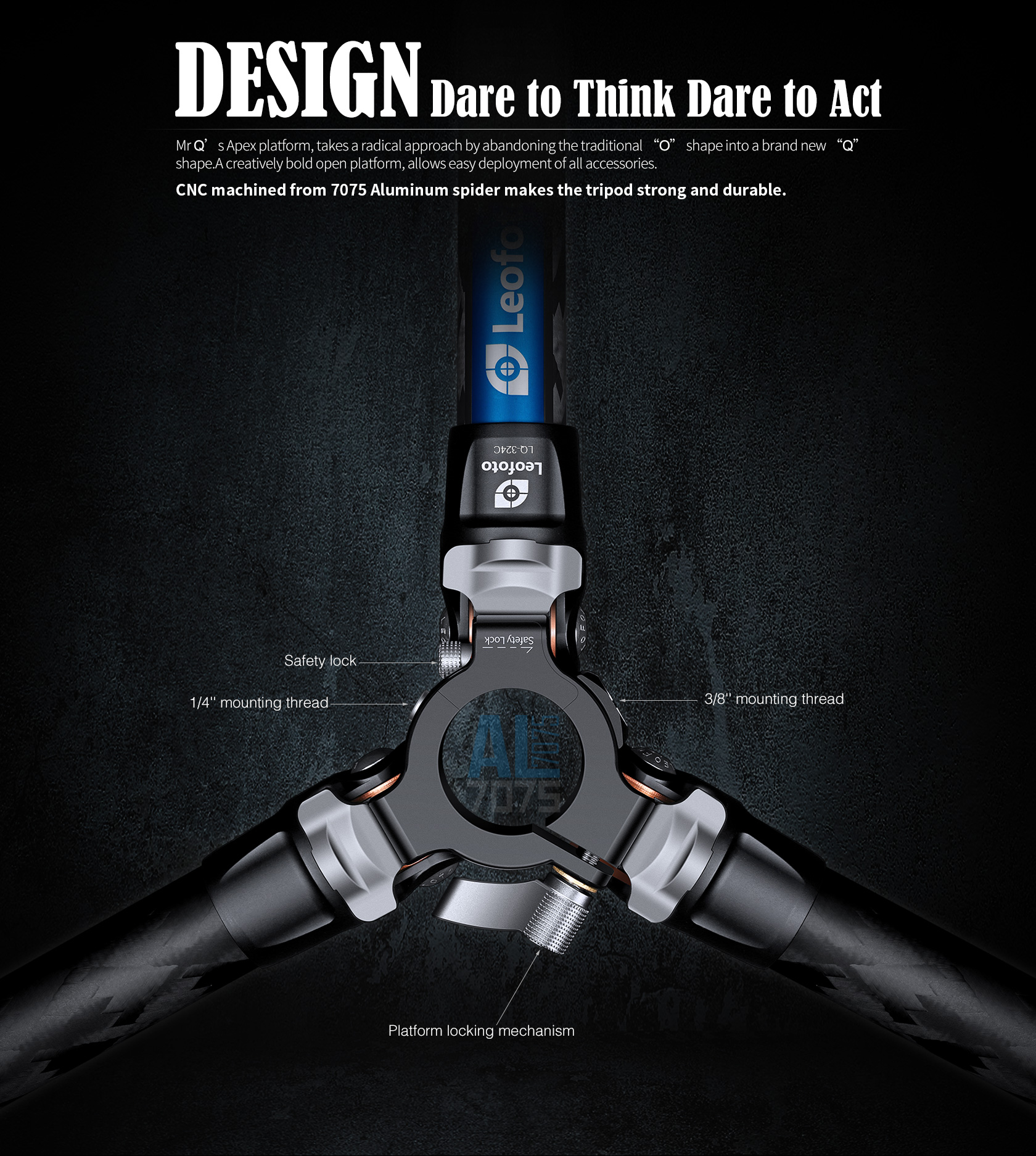 • CNC machined from 7075 Aluminum spider makes the tripod strong and durable.