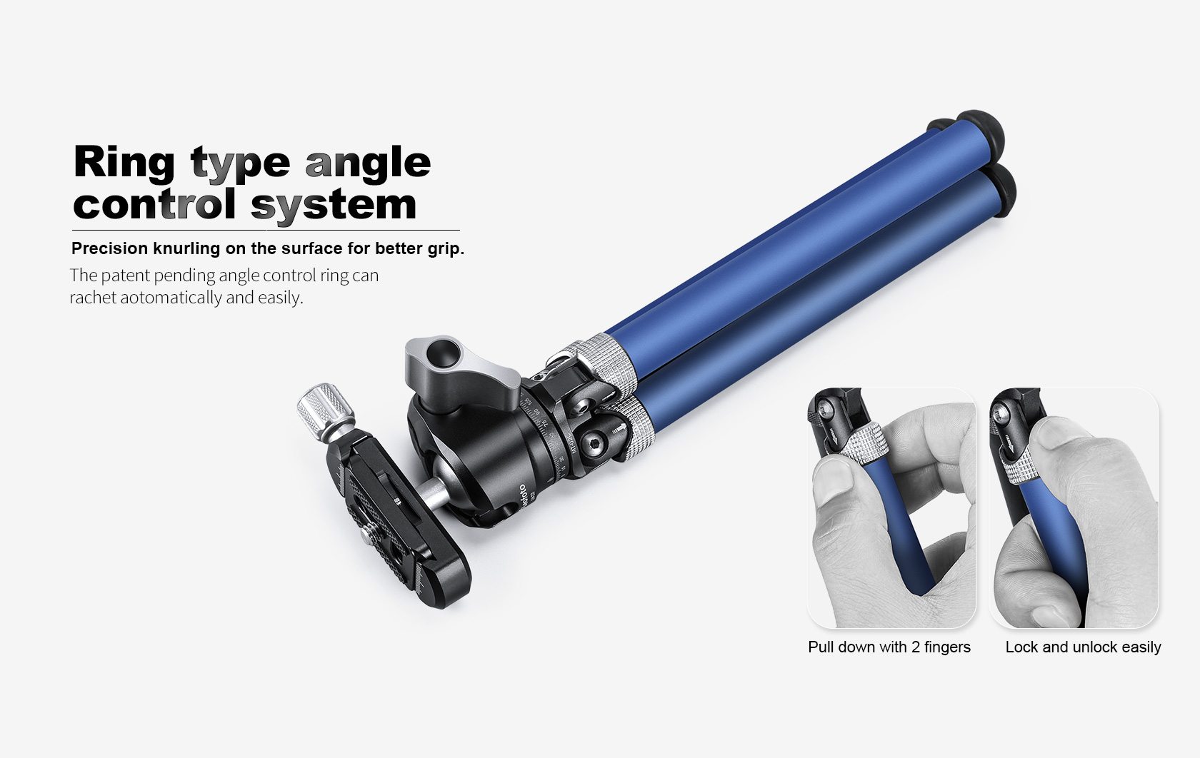 The Leofoto MT-02C Mini Tripod adjusts into different positions without any knobs or levers having to be used. The featured two-finger, knurled leg locks are extremely convenient for setting each leg to the desired angle individually. The legs allow you to have 3 variable leg angles, 30-degree, 60-degree, and 85-degree. The compact single leg section tabletop tripod features a 1/4″-20 mounting screw.