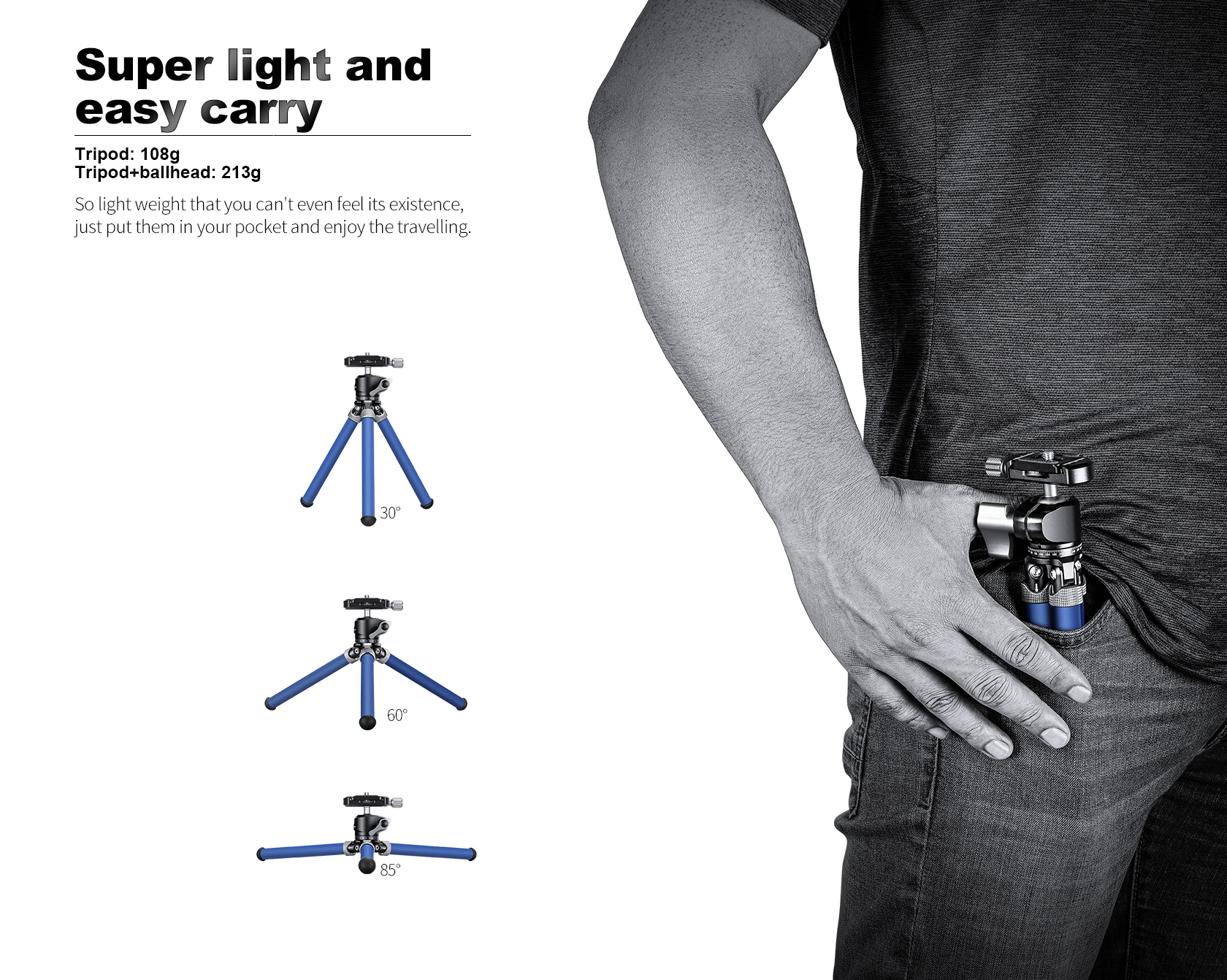 Leofoto MT-02C(Classic blue)+LH-22 Mini Tabletop Travel Carbon Fiber Tripod