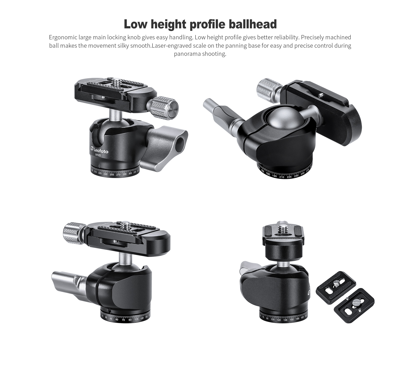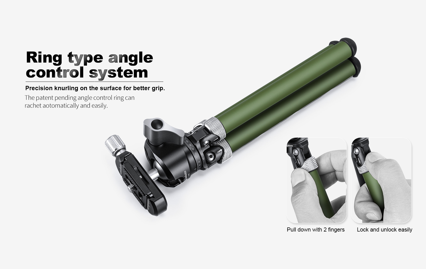 The Leofoto MT-02C Mini Tripod adjusts into different positions without any knobs or levers having to be used. The featured two-finger, knurled leg locks are extremely convenient for setting each leg to the desired angle individually. The legs allow you to have 3 variable leg angles, 30-degree, 60-degree, and 85-degree. The compact single leg section tabletop tripod features a 1/4″-20 mounting screw.