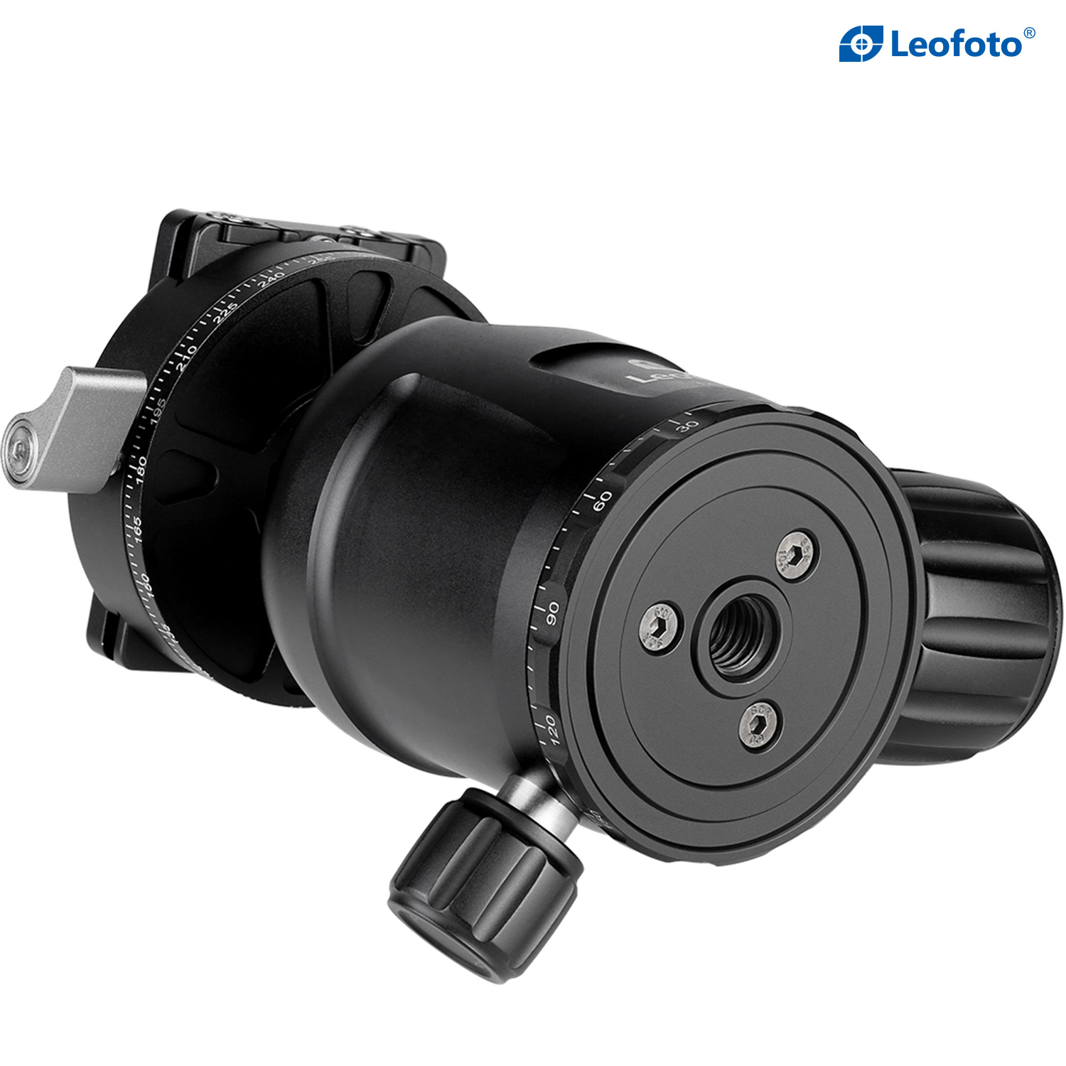 The Leofoto NB series Ballhead is a lightweight aluminum ball head with a large locking knob to control the movement of the ball, and a separate knob for the 360° panning movement. Within the large locking knob is a tension control dial to adjust the amount of friction on the ball. Taking panoramic photos is simple thanks to the panoramic scale at the base of the head.