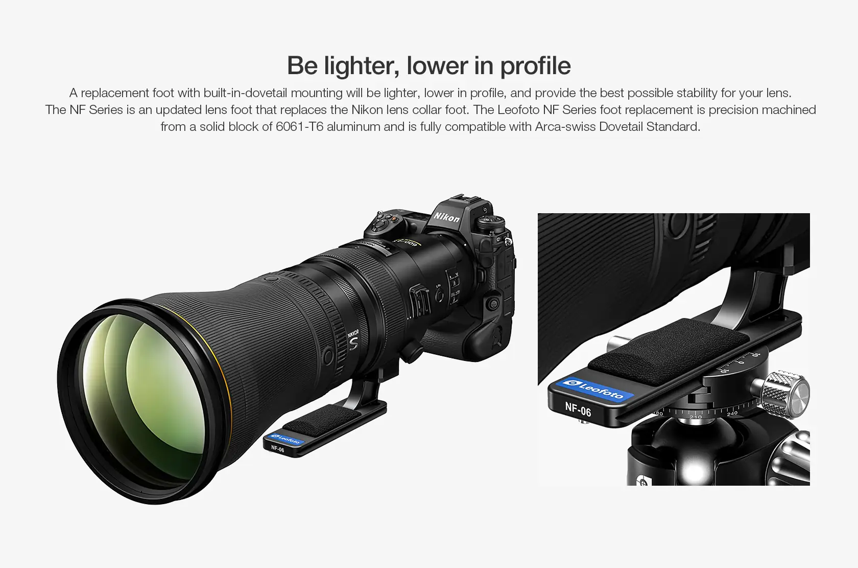 / Leofoto NF-06 Replacement Foot for Nikon Z 800mm f/6.3 VR S, Nikon Z 400 f/2.8 TC VR S, Nikon Z 600mm f/4 TC VR S