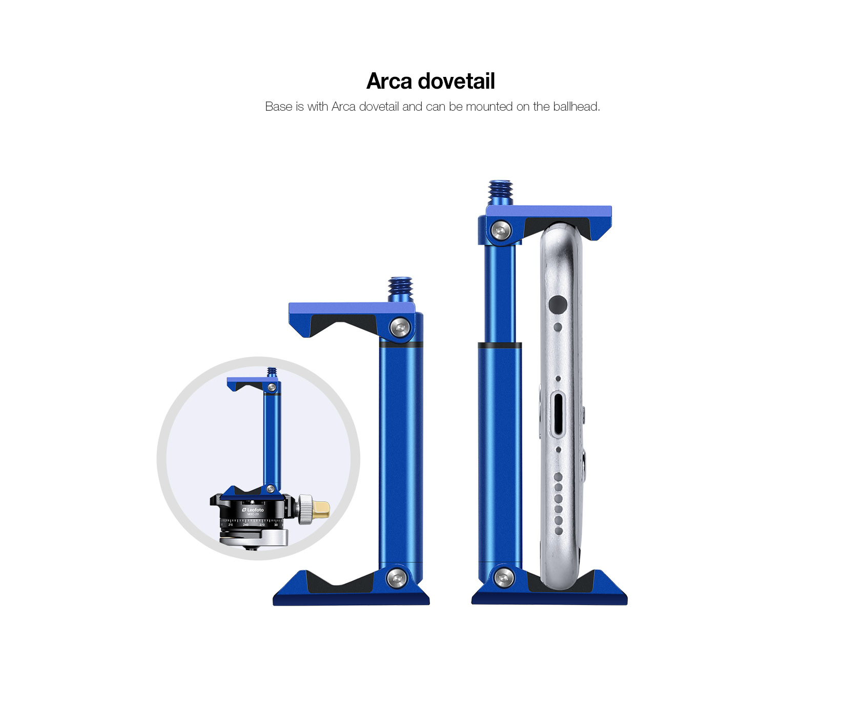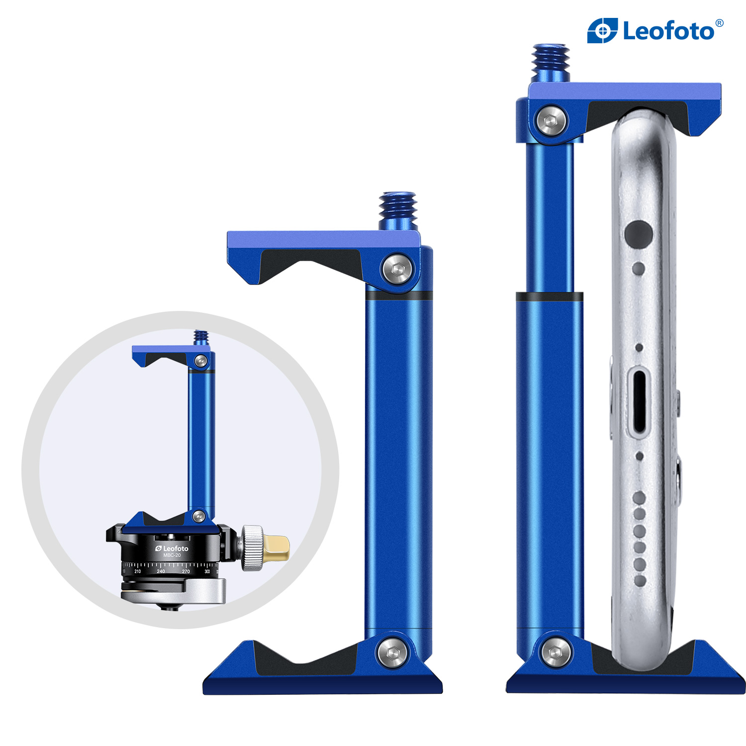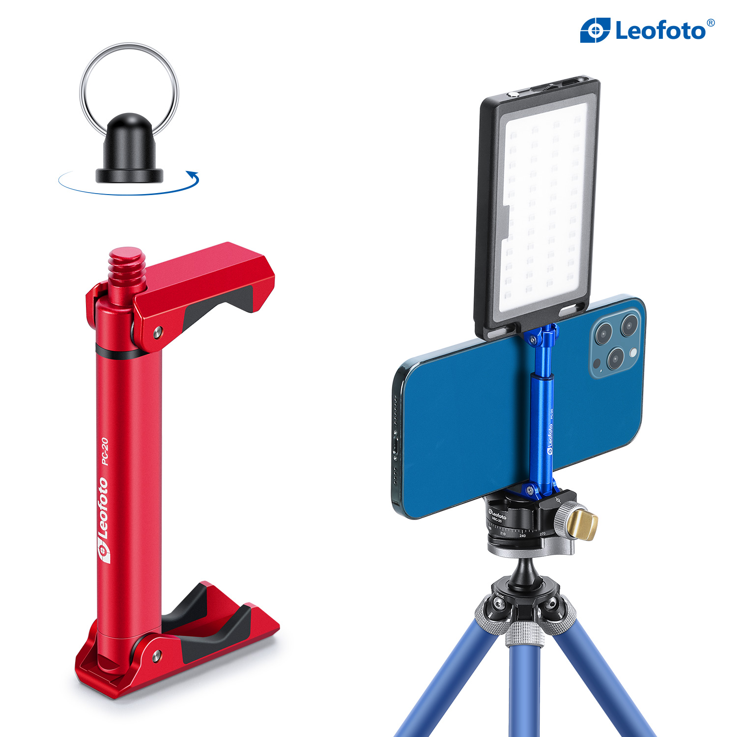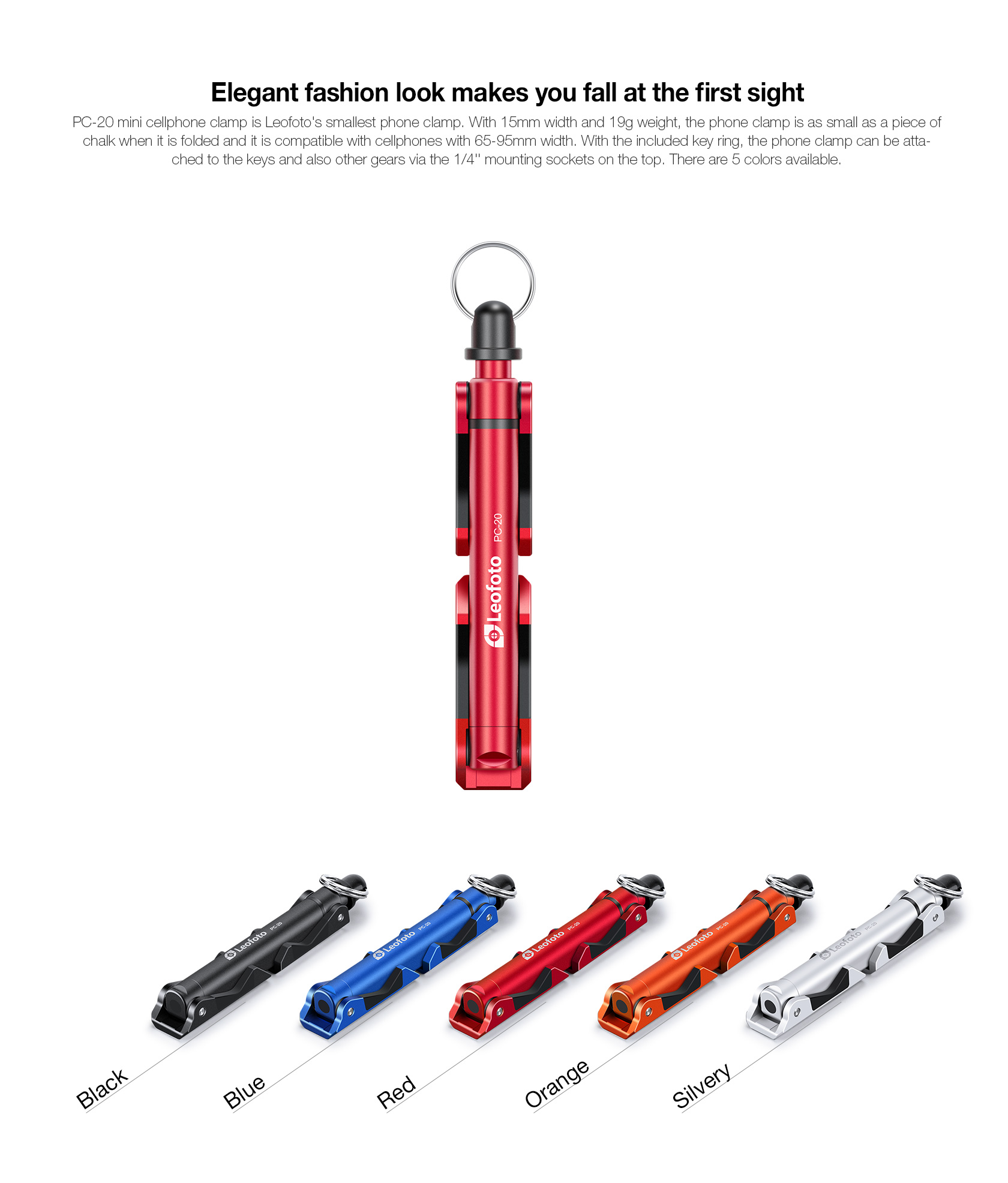 Leofoto PC-20 Mobile Phone Stand with 1/4″ Mounting / Arca Compatible (Black/Blue/Red/Orange/Silver)