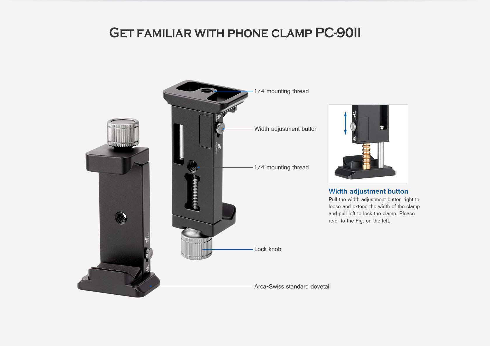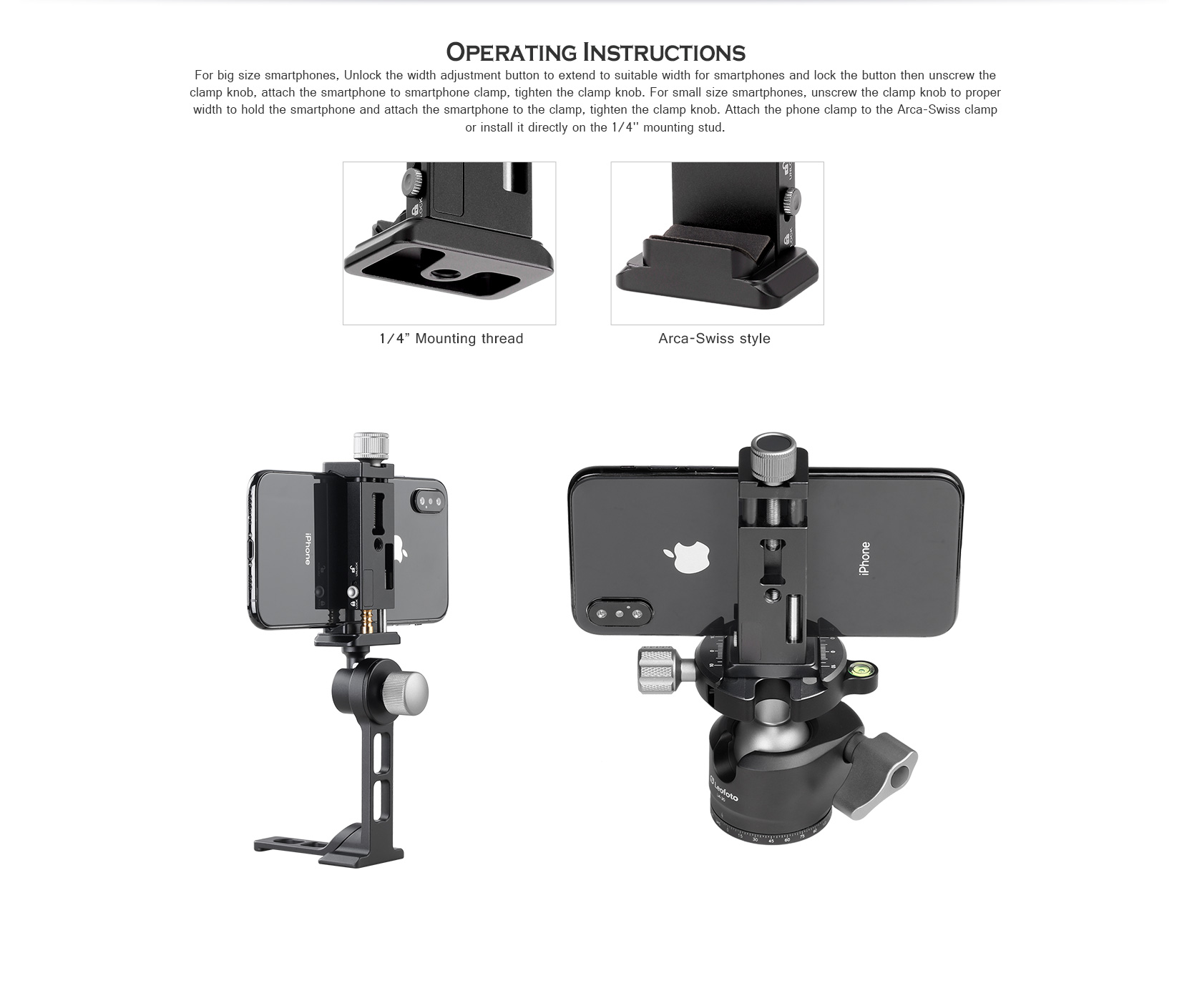 Leofoto PC-90II Adjustable Smartphone Clamp with Locking Width and Arca-Compatible Base