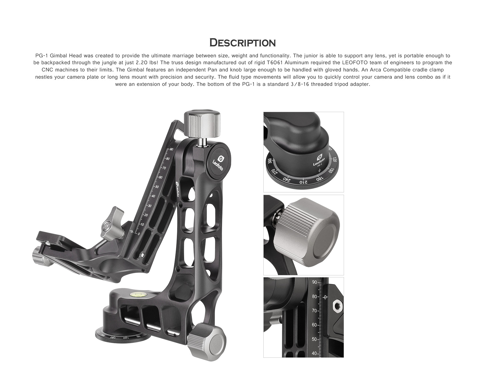 Leofoto PG-1 Lightweight Gimbal Tripod Head w/ Plate & Bag (Black/Camo Color)