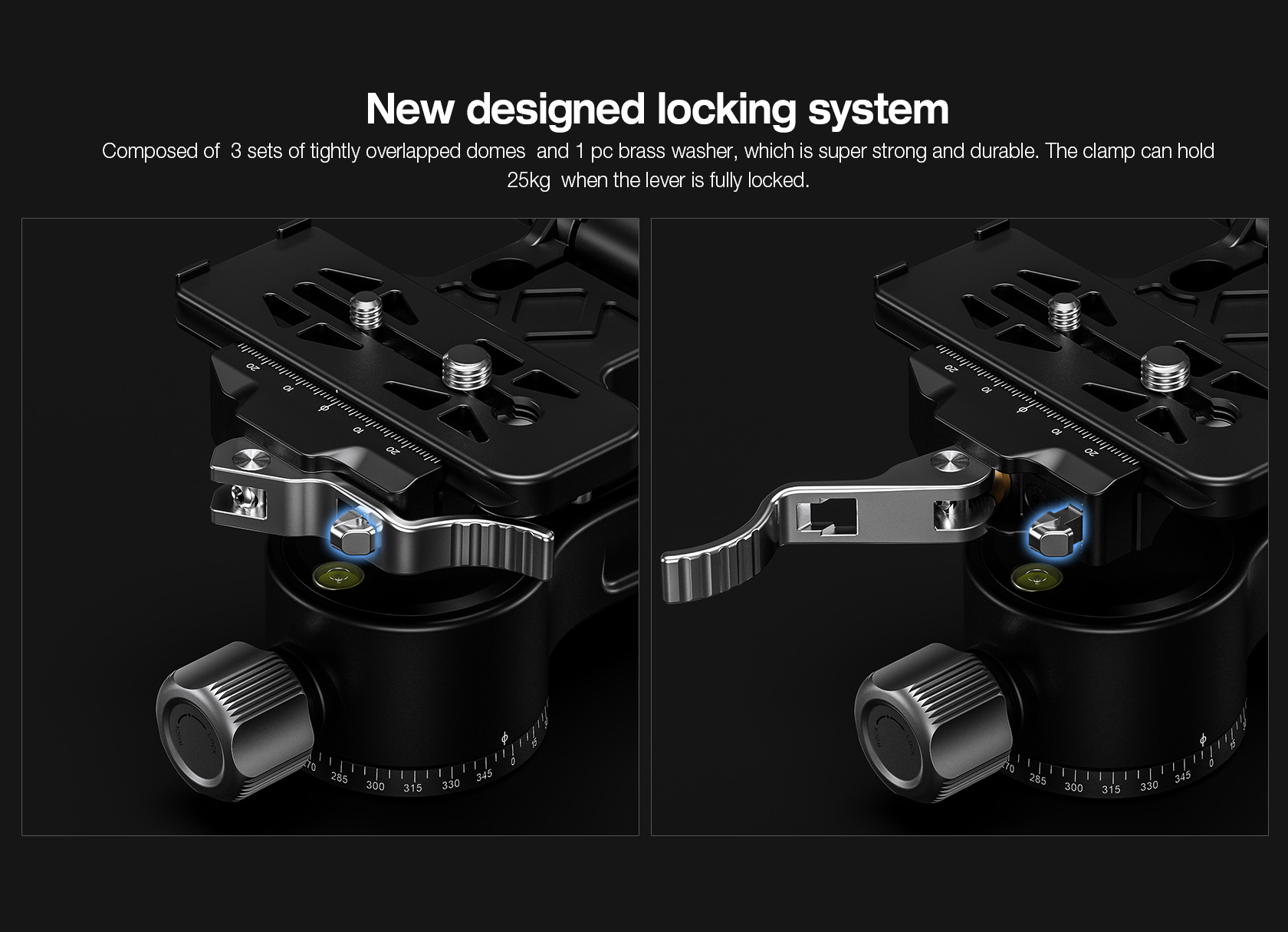 PG-2L: Newly designed lever-release clamp with a safety latch to prevent accidental unlocking.