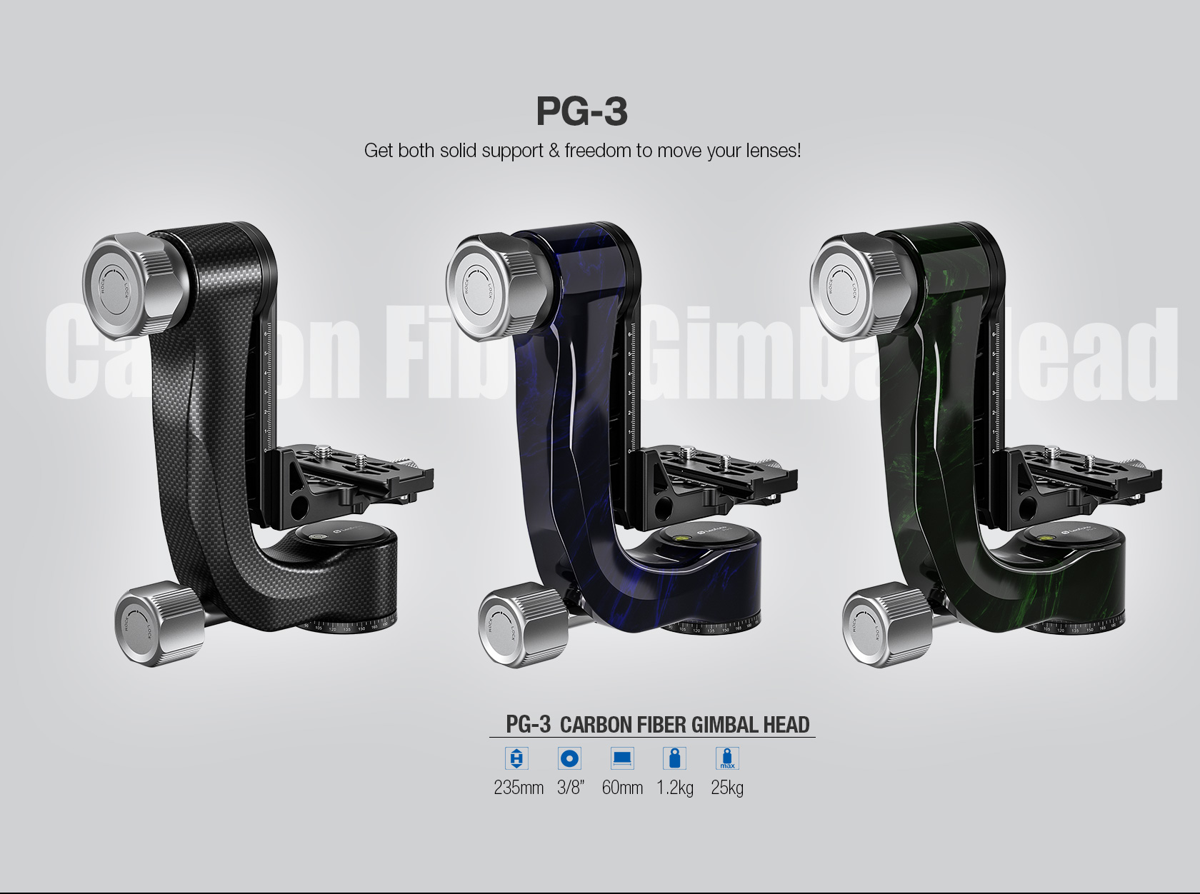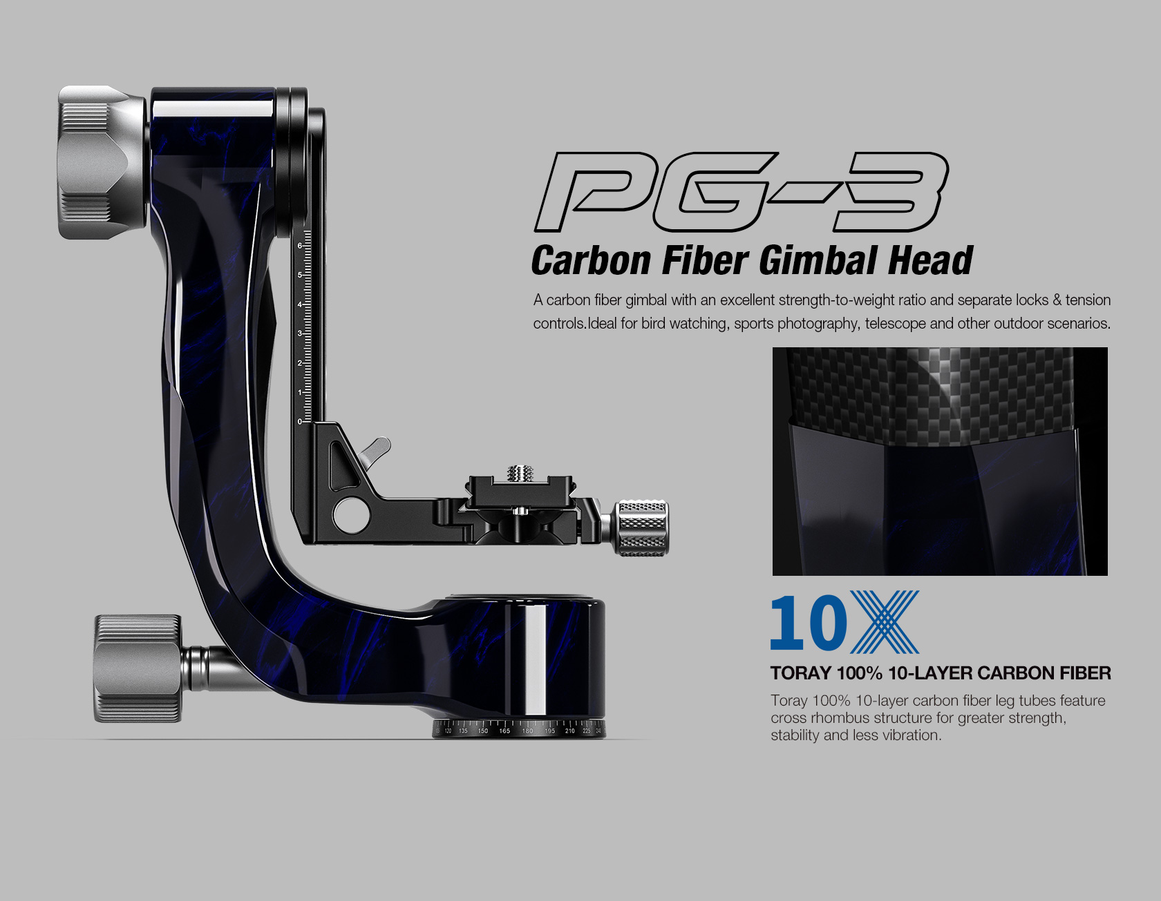 Leofoto PG-3 (BLUE) Carbon Fiber Gimbal Head
