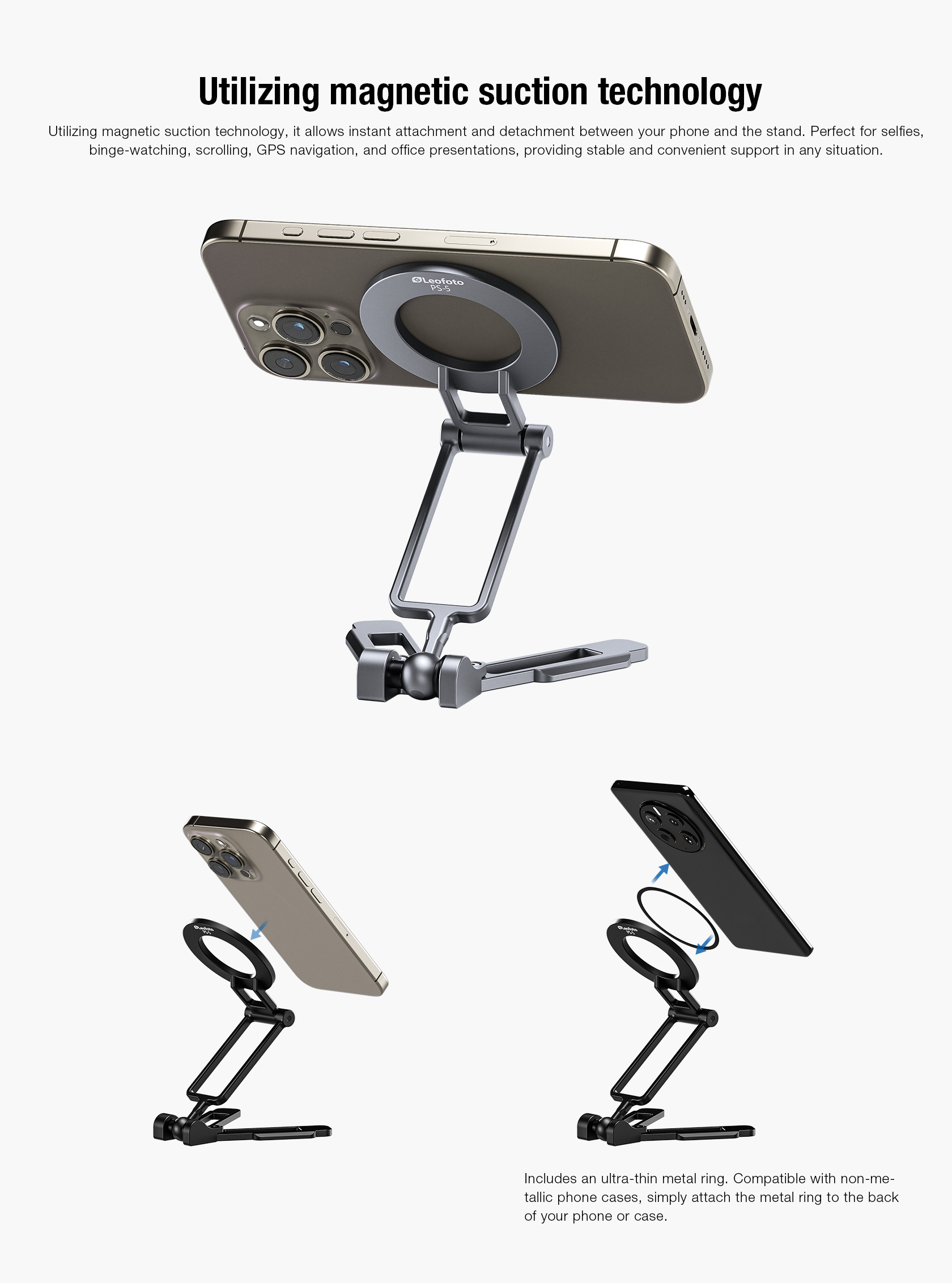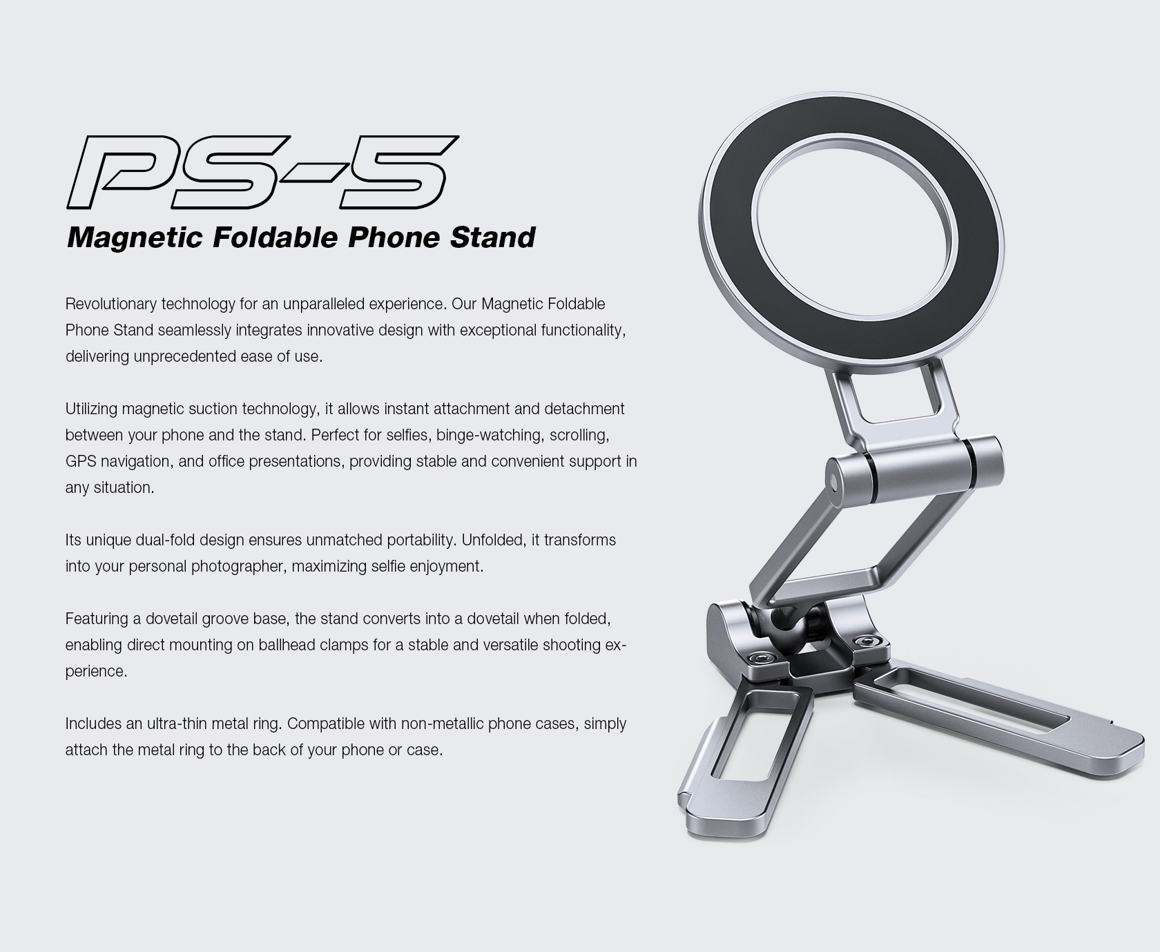 Leofoto PS-5 Magnetic Foldable Cellphone Stand with Arca-Compatible Dovetail
