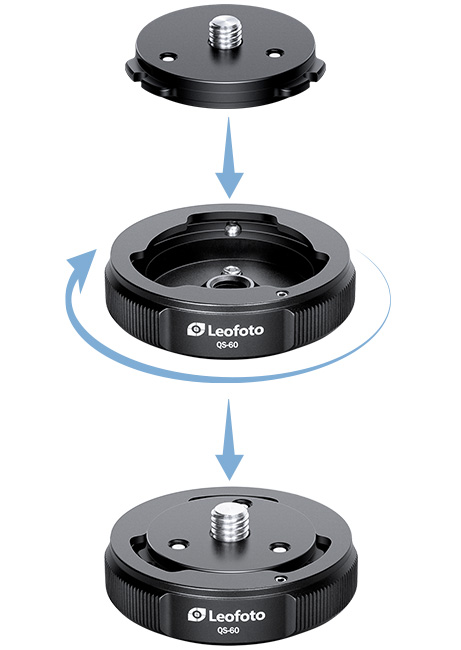 The Leofoto QS Quick-Link Set is a quick release system that allows tripod heads to be exchanged from a tripod and then locked securely with a simple twist in seconds. The Quick-Link System makes it possible to travel with a single tripod but multiple heads for different applications.