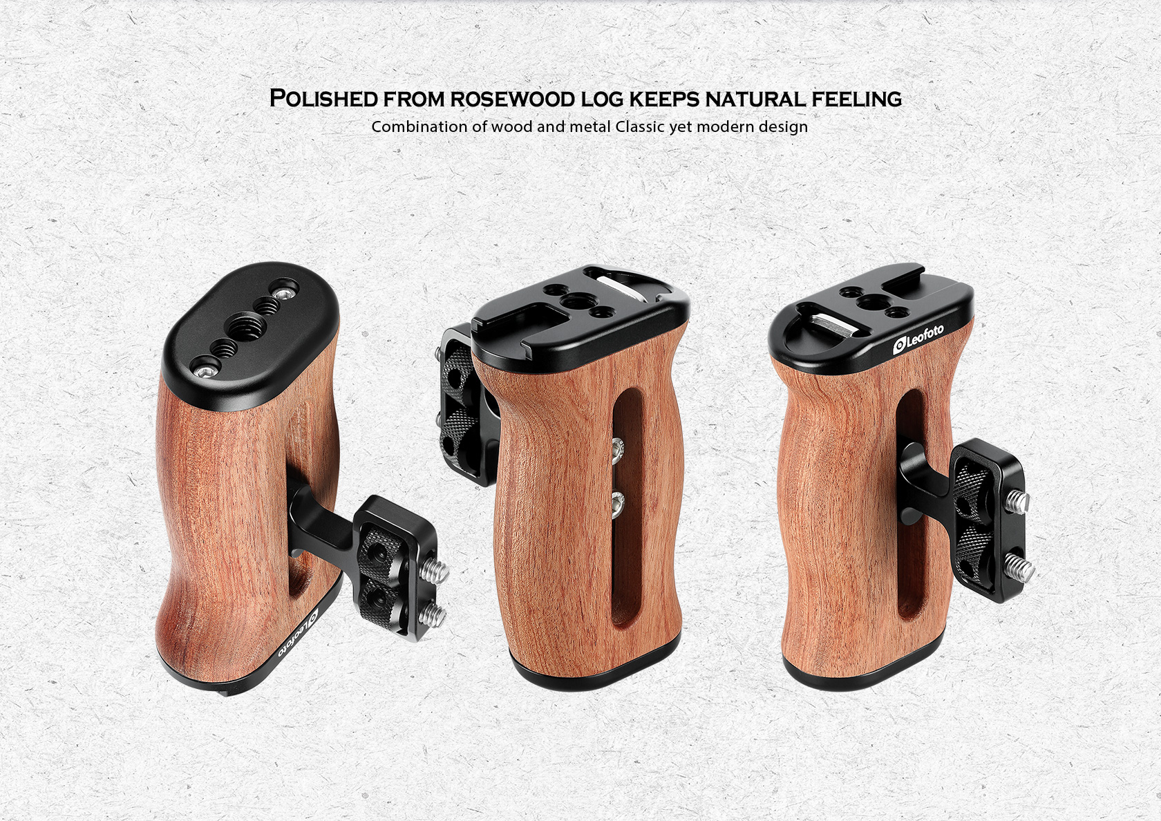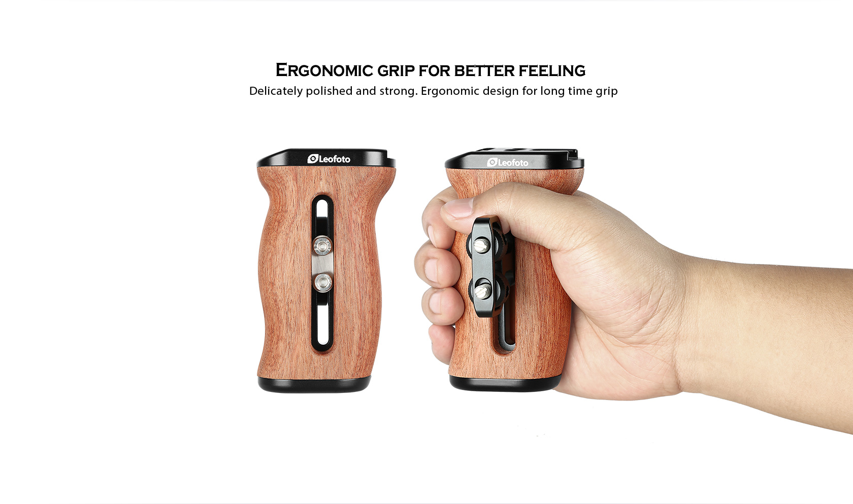 The Leofoto CH-3 Rosewood Hand Grip is designed for camera cage. The mounting screw is removeable on both sides. It is easy for you to hold the camera and mount multiple accessories for professional shooting, ideal for low angle shooting.