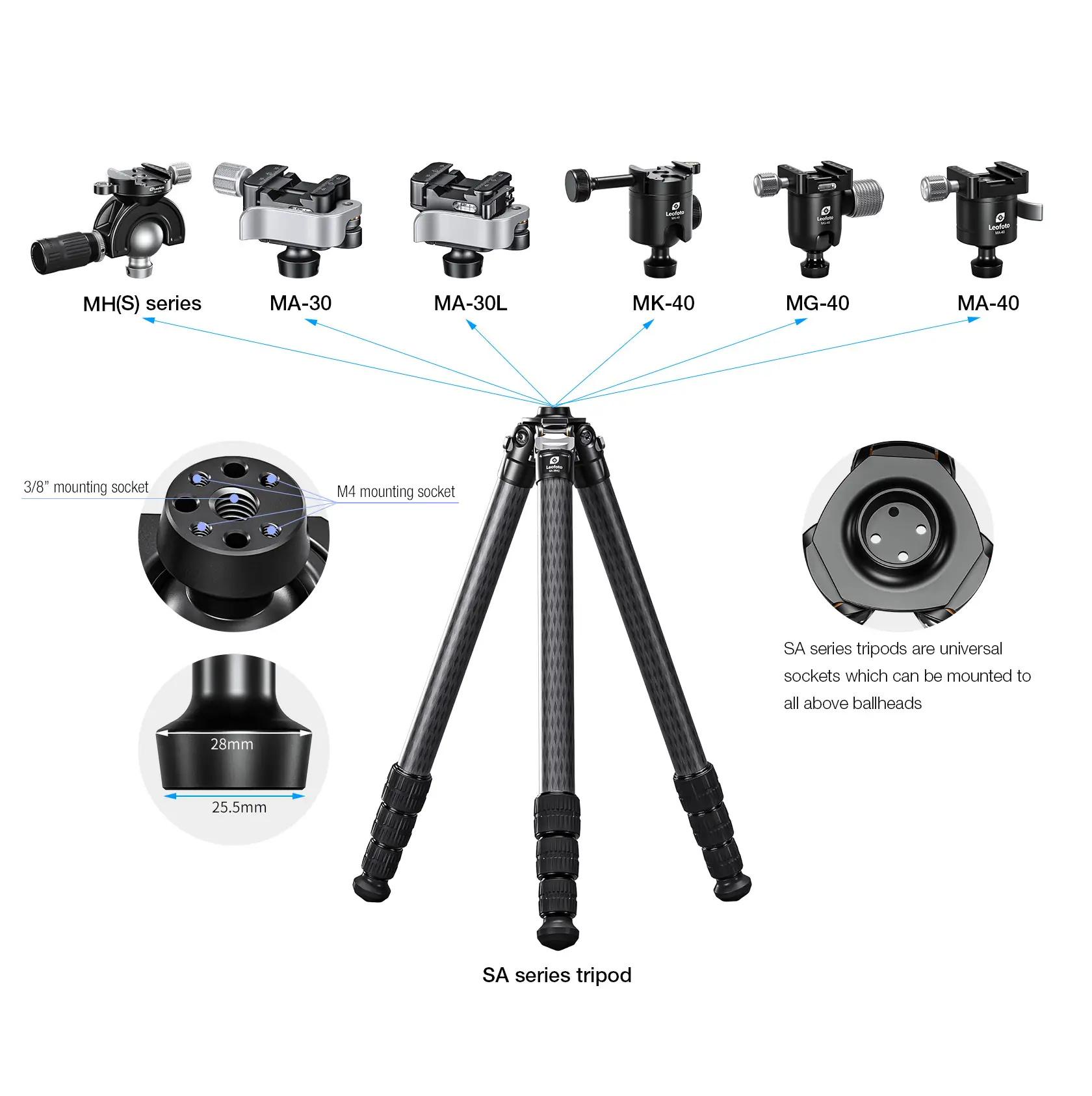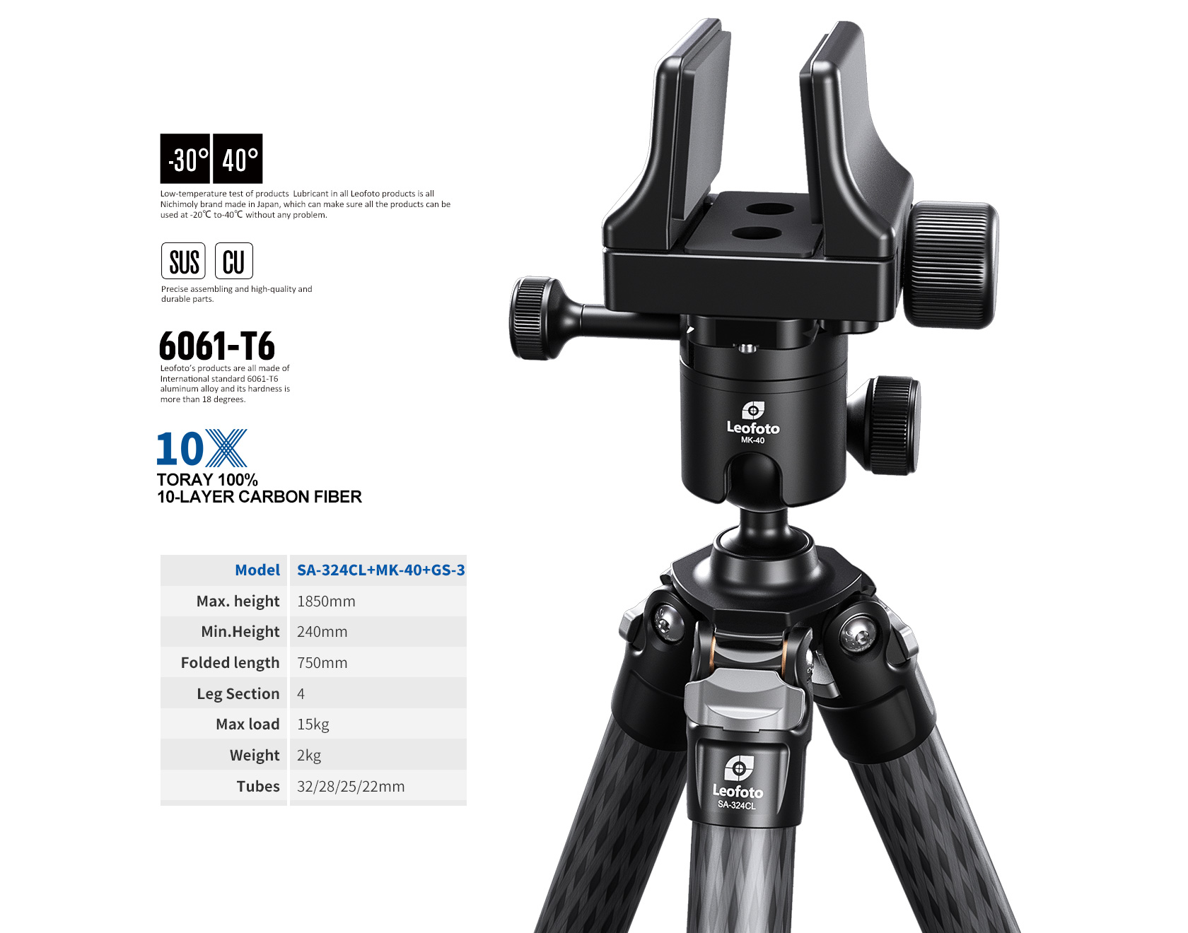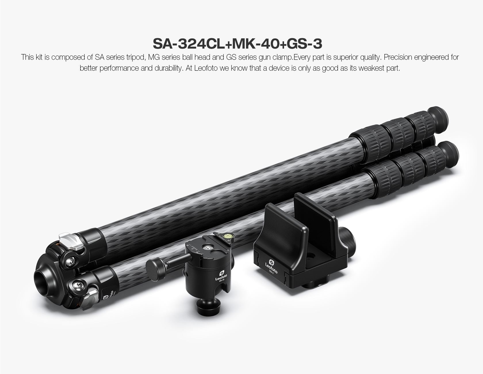 Leofoto SA-324CL+MK-40+GS-3 Professional carbon fiber Tripod