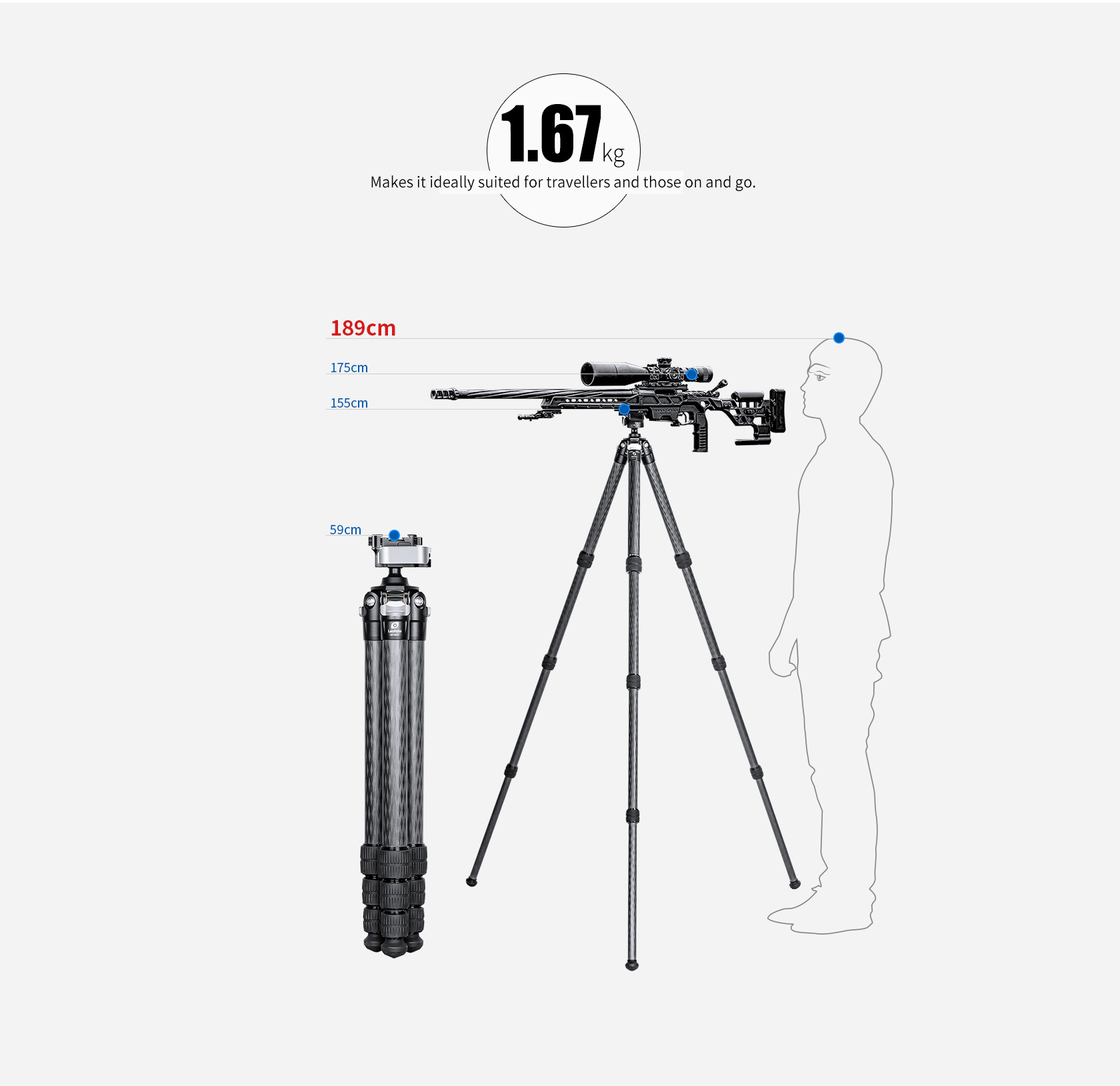 The Leofoto SA Series tripods are one of the most compact collapsed setups on the market with a perfectly balanced weight to strength ratio. The angle stop design has also been improved from the standard pull tab to a knurled bar which allows the user to adjust the angles with only one hand as opposed to two. The SA Series offers unparalleled versatility, built as a hunter’s companion who also enjoys long days on the range, but most requested by military, law enforcement, competitive shooters or those simply looking for one of the most compact and reliable shooting supports on the market. The SA Series tripods offer maximum rigidity, capable of supporting non-traditional shooting positions with a heavy load capacity. These tripods feature three angle stop positions to increase shooting capabilities and a compact design which maintains a small footprint, creating a tripod setup which is extremely easy to pack and carry on the go.