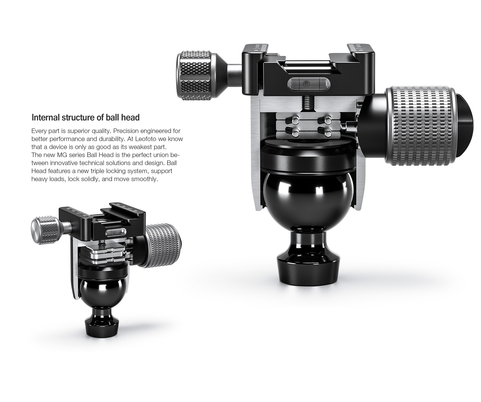 * Tripods must occasionally withstand tremendous bending and torsion loads. It is crucial that the leg angle stops and all other structural joints are well supported. Leofoto offset leg joints fully support the leg angle stops allowing loads to be transferred straight through the strongest members of the tripod. This also means the tripod is more compact when collapsed