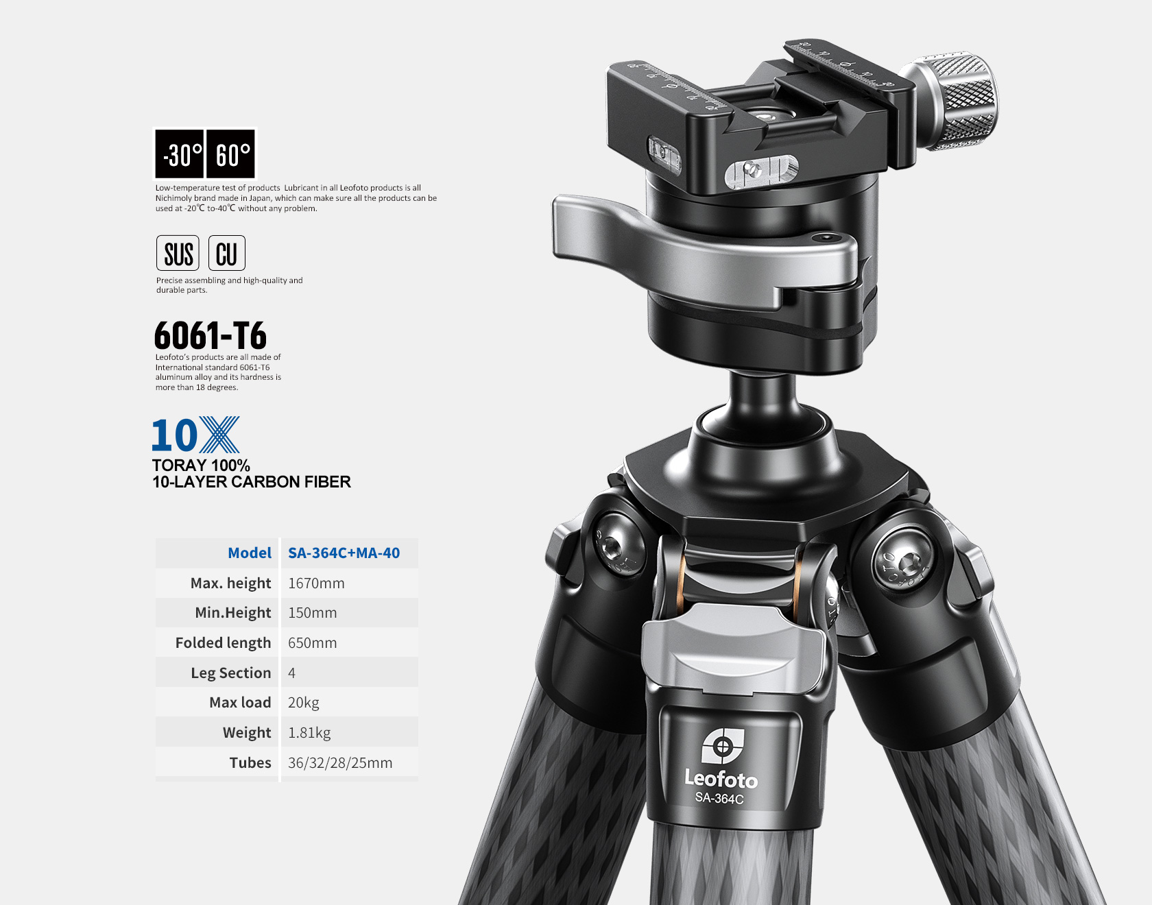 Leofoto SA-364C+MA-40 Professional carbon fiber Tripod