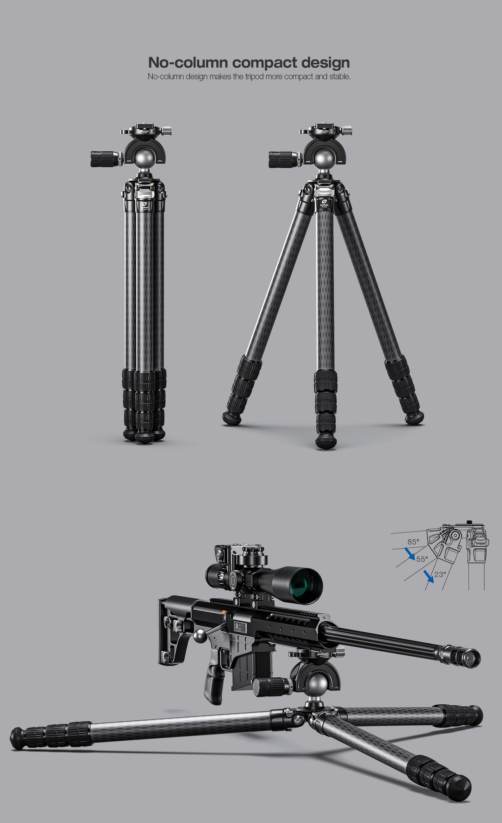 The Leofoto SA Series tripods are one of the most compact collapsed setups on the market with a perfectly balanced weight to strength ratio. The angle stop design has also been improved from the standard pull tab to a knurled bar which allows the user to adjust the angles with only one hand as opposed to two. The SA Series offers unparalleled versatility, built as a hunter’s companion who also enjoys long days on the range, but most requested by military, law enforcement, competitive shooters or those simply looking for one of the most compact and reliable shooting supports on the market. The SA Series tripods offer maximum rigidity, capable of supporting non-traditional shooting positions with a heavy load capacity. These tripods feature three angle stop positions to increase shooting capabilities and a compact design which maintains a small footprint, creating a tripod setup which is extremely easy to pack and carry on the go.
