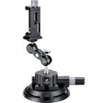 Mount a smartphone on a vehicle for motion shots with the Leofoto SC-02 Suction Cup Mounting Kit. The kit consists of a strong SC-02 suction cup, an articulating versa magic-arm, and a PC-90II smartphone clamp. The suction cup mounts onto a flat, clean, non-porous surface and supports up to a maximum 88lb load.