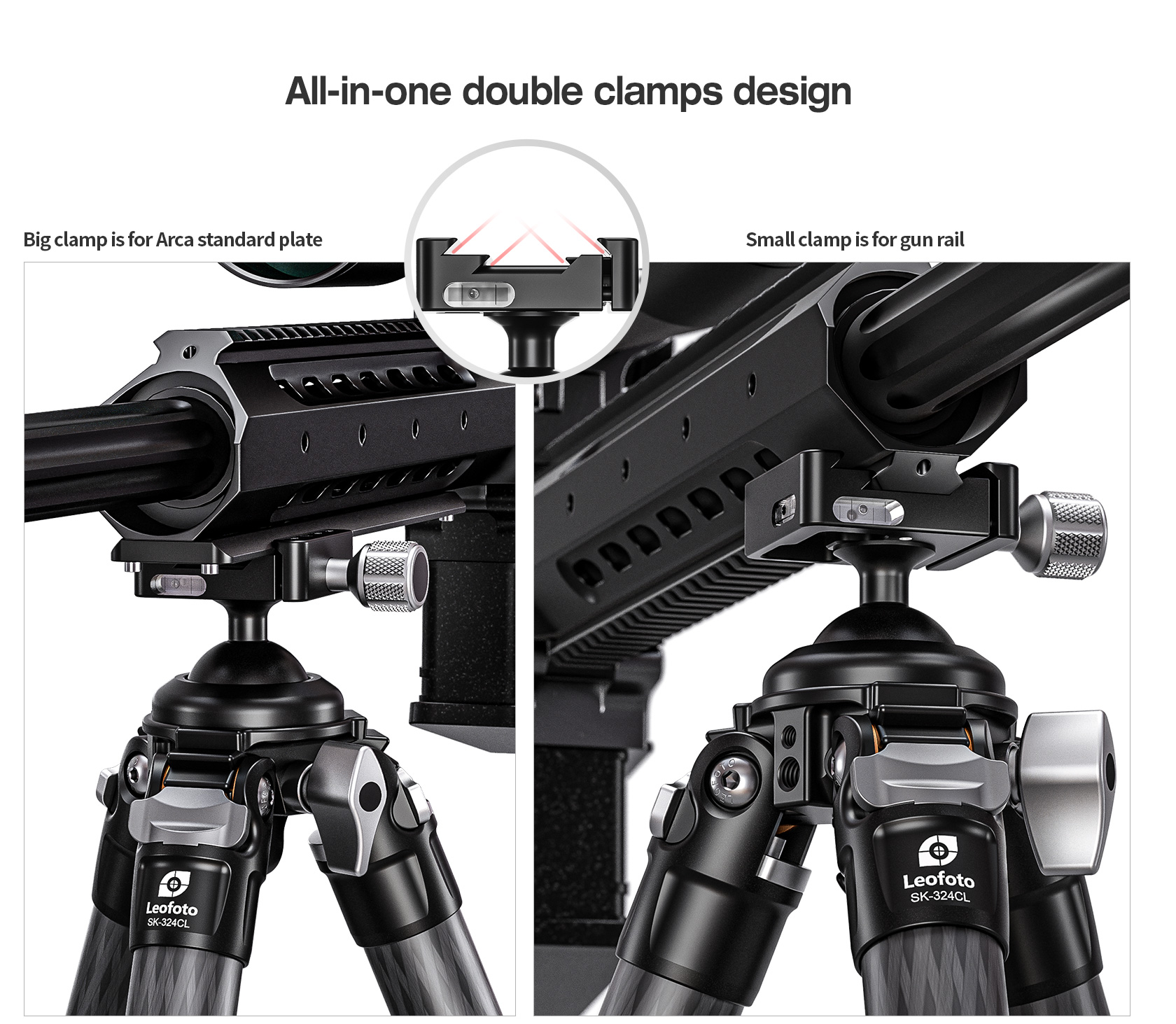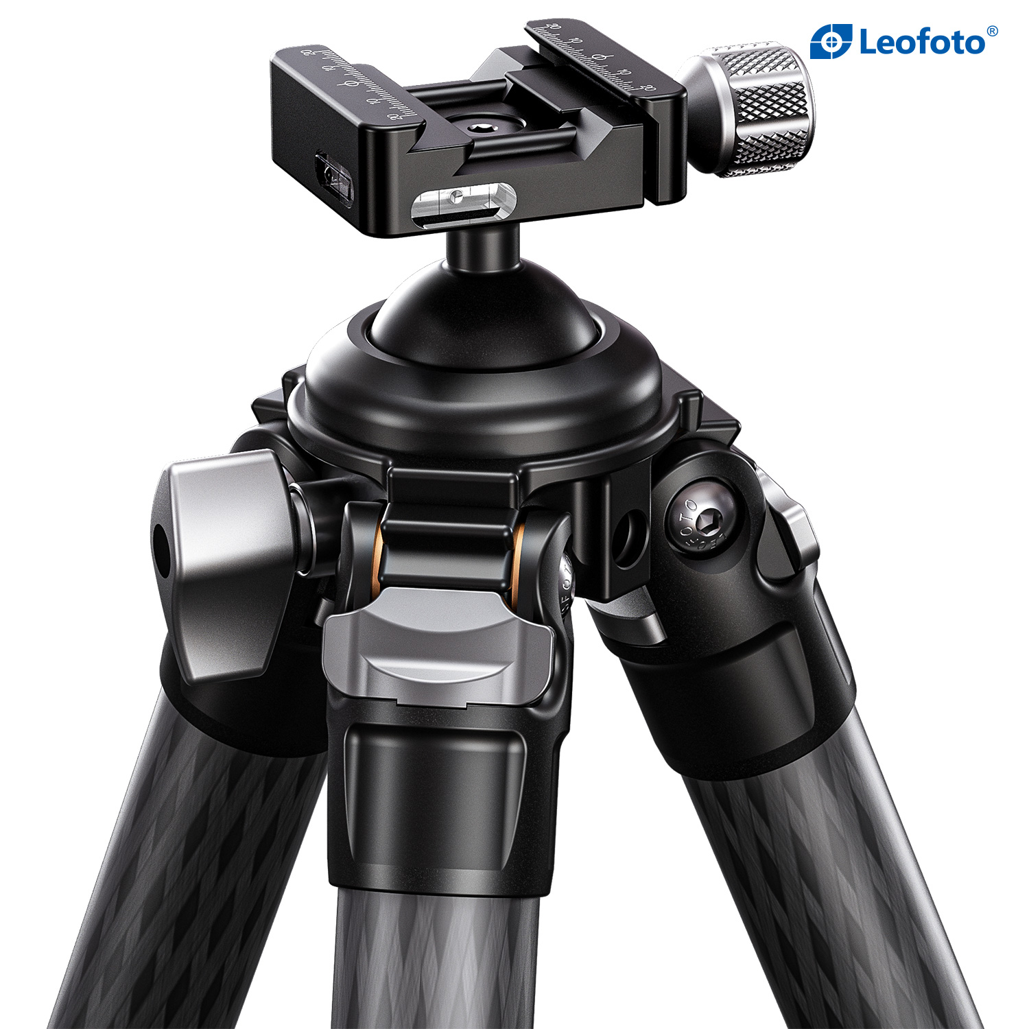 * Integrated knob control ballhead with lever-release clamp for speed
