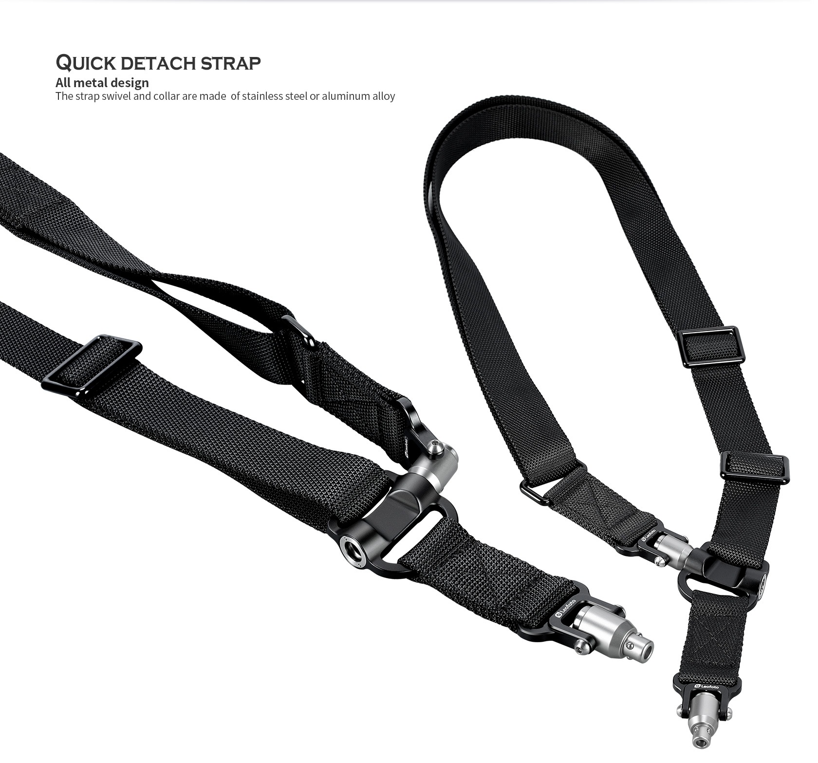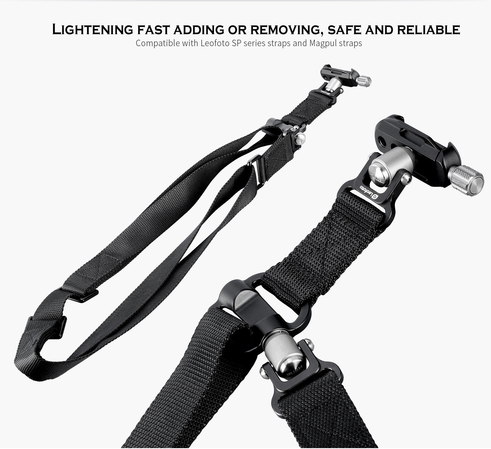 Quickly access your camera when needed and stay mobile with this SP-01+DC-22Q QD Strap & Clamp Kit from Leofoto. The strap is designed to be worn cross-body, draped from one shoulder to the opposing hip. A connected camera can then rest on your the hip so that you can quickly raise it to shoot. The included Arca-Swiss-style dovetail clamp with QD socket allows you to quickly remove your camera and attach it to a tripod. Two 1/4″-20 tripod sockets are located on the bottom of the clamp for standard and tabletop tripod mounting.