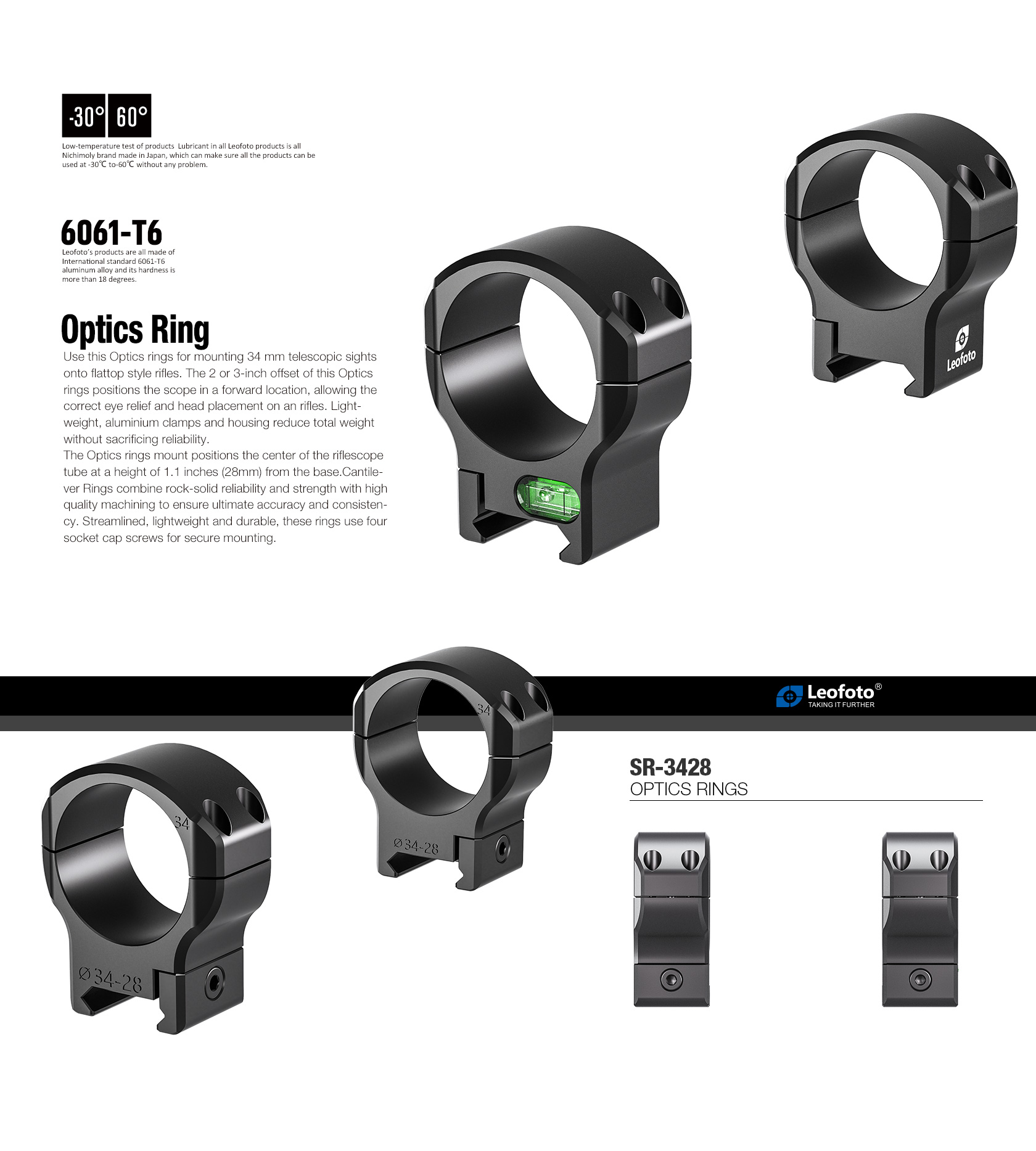 Use this Optics rings for mounting 34 mm telescopic sights onto flattop style rifles. The 2 or 3-inch offset of this Optics rings positions the scope in a forward location, allowing the correct eye relief and head placement on an rifles. Lightweight, aluminium clamps and housing reduce total weight without sacrificing reliability. The Optics rings mount positions the center of the riflescope tube at a height of 1.1 inches (28mm) from the base.Cantilever Rings combine rock-solid reliability and strength with high quality machining to ensure ultimate accuracy and consistency. Streamlined, lightweight and durable, these rings use four socket cap screws for secure mounting.
