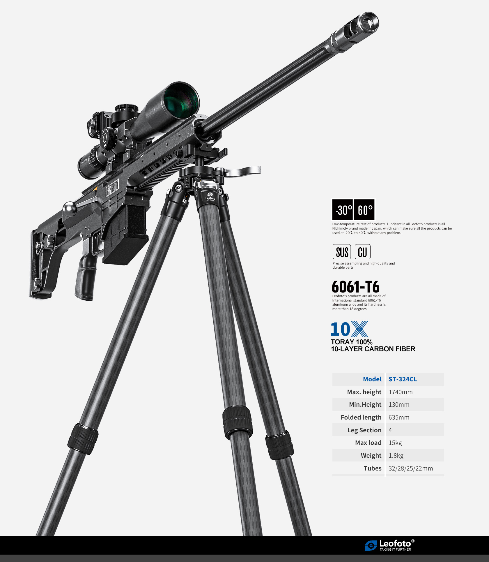 Leofoto ST-324CL Professional carbon fiber Tripod