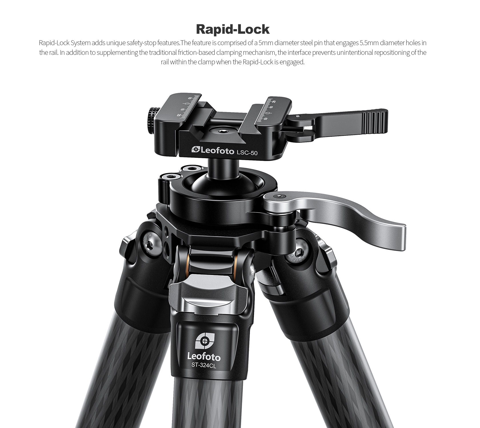 * Integrated lever control ballhead with lever-release clamp for speed