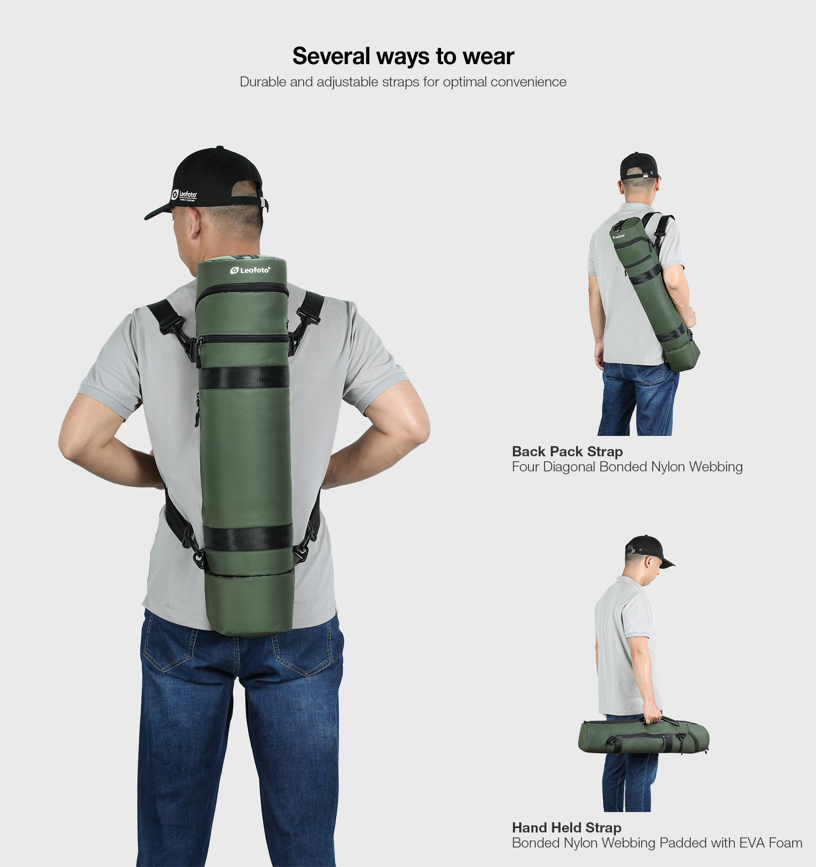 The Leofoto TB-01 Tripod Bag with backpack straps is perfect for those looking for a rugged tripod bag. This tripod bag is extremely durable featuring scratch-resistant and water resistant fabric. It can be carried in various ways due to the many strap options and offers a side compartment as well as a canopy opening for ease of access. The 10mm of EPE cotton will keep the tripod protected.