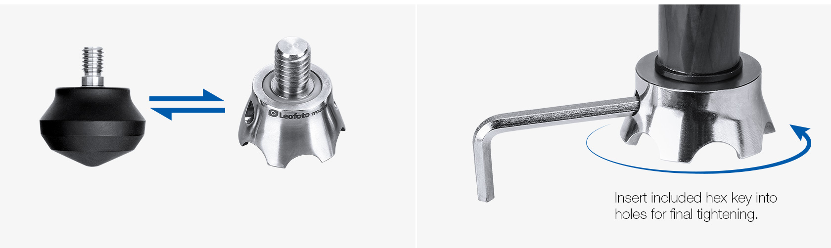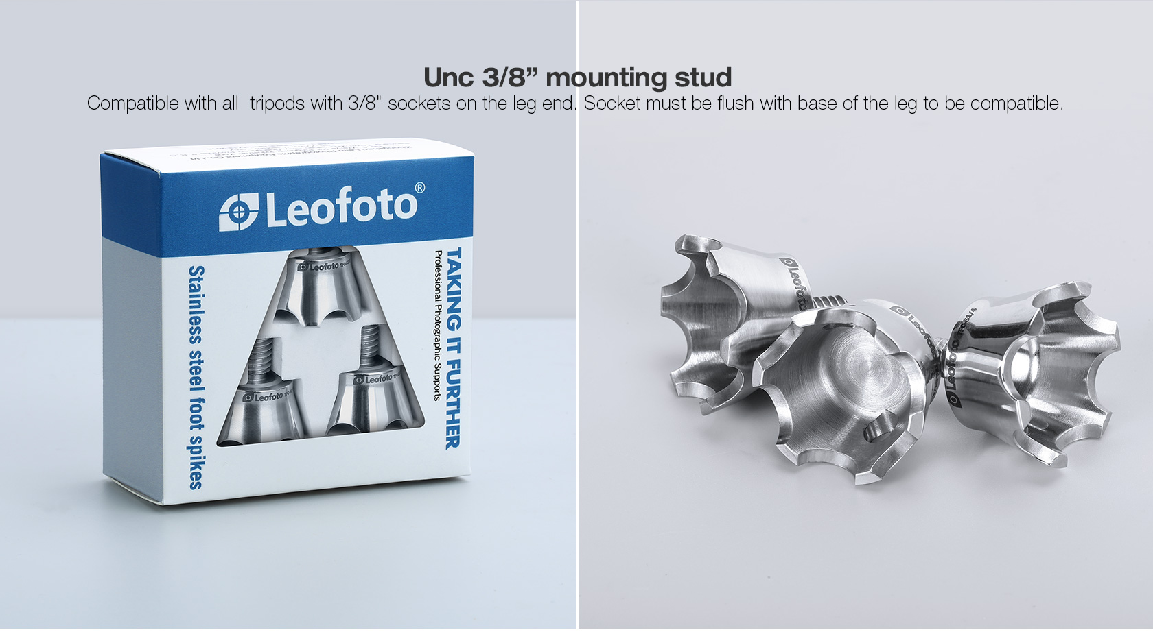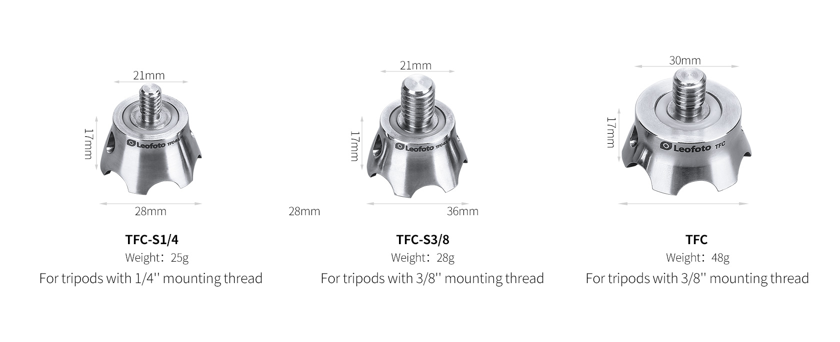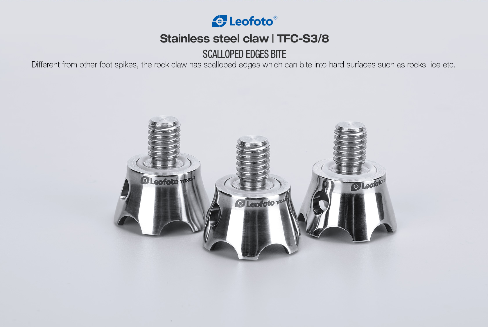The Leofoto TFC Series Claw Feet are precision machined stainless steel feet with scalloped, sharp-edged claws. These feet are ideal to use on uneven, rocky terrain, they dig into the ground and keep a good grip. Each claw features a 3/8″ mounting screw and can be attached to the bottom of tripod legs that have a 3/8″ thread for tripod feet.