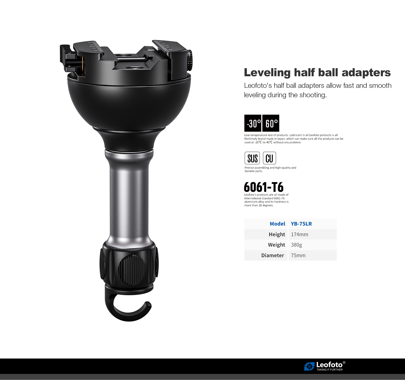 The Leofoto YB-75LRC Leveling Head with a Large Handle is designed for the shooter who wants the lowest profile and a stable mounting base that can be leveled on the fly. The leveling base features lightweight aluminum construction and a redesigned Hybrid Arca + Picatinny Lever-Release Clamp with an adjustable clamping width.