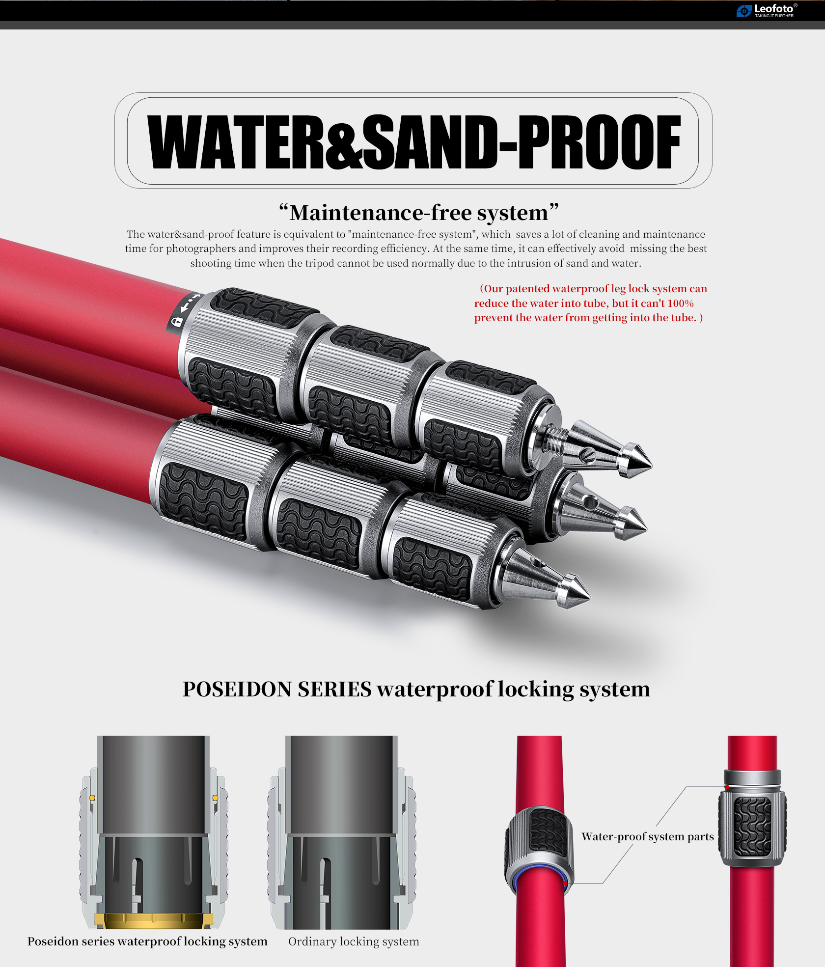 The Athena Ocean Tripod. It is designed for use in harsh, wet environments. Made with 10-layer carbon fiber leg tubes and titanium components, it provides excellent corrosion resistance and makes it suitable for use in a variety of conditions. The tripod also features twist-lock joints that repel water, sand, and debris, which helps to minimize the need for maintenance. The LA series tripod features a fixed, compact apex.